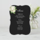 Carte menu affichée sur papier de base en noir avec une belle impression rose blanche. Script et texte standard en blanc. Customisez les éléments du menu en cliquant sur le bouton personnaliser, cherchez à droite et trouvez les cases appropriées pour modifier vos informations. Je vous souhaite de bons voeux pour votre jour de mariage.