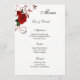 Ce modèle de carte de menu est affiché sur le papier de base en blanc avec une belle rose rouge imprimé design. Script et texte standard en noir. Customisez les noms et les éléments du menu à votre place en cliquant sur le bouton personnaliser, recherchez à droite et trouvez les cases appropriées pour modifier vos informations. Je vous souhaite de bons voeux pour votre jour de mariage.