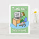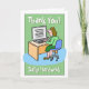 Une carte conçue comme un message de remerciement pour une employée de bureau ou une secrétaire. Le design est l'illustration d'une femme qui travaille à son bureau à l'aide d'un ordinateur.