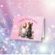 Merci les cartes pour un baby shower. Ma petite fille adorable assise à côté de son petit chiot German Shepherd dans une parcelle de jolies fleurs d'aquarelle. Papillons roses et bleus et jolies fleurs sauvages.