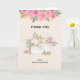 Carte de voeux Merci avec citrouilles blancs d'aquarelle fantaisie aux accents de fausse parties scintillant or. Entouré de feuilles verts et de fleurs sauvages roses.