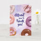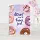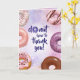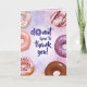Un assortiment de beignets disposés le long des bords de cette carte de voeux qui peut être utilisé comme carte de remerciements pour un bébé sprinkle, baby shower, ou même une gorgée et voir. Le texte "donut how to Thank you" est modifiable et le "O" dans "donut" est remplacé par un beignet rayé violet. L'arrière - plan est un lavage à l'aquarelle multicolore avec des éclaboussures de peinture à l'aquarelle et de parties scintillant en faux or. Disponible avec des produits correspondants.