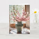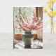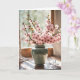 Bouquet de branche fleurie rose cerisier dans un vase vintage par une fenêtre ensoleillée de la ferme. Tout le texte peut être modifié.