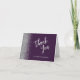Cette élégante carte de remerciements mariage moderne présente une bordure en faux parties scintillant argent sur un arrière - plan violet. Le texte personnalisable combine les mots "Merci" en écriture manuscrite gris argent et les noms de la mariée et du marié en sans serif.
