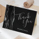 Cette élégante carte de remerciements mariage moderne dispose d'une bordure en aquarelle noire ornée d'une parties scintillant en faux argent. Le texte gris argenté personnalisable combine les mots "Merci" en écriture manuscrite et les noms de la mariée et du marié en caractères italiques sur un arrière - plan non noir.