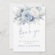 Merci moderne de fleurs bleues poussiéreuses. Des fleurs élégantes en bleu clair et blanc coulent du haut. Le Merci est dans un script de style manuscrit en écriture bleue. Personnalisez facilement le reste du texte à vos propres détails.