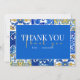 Correspondant élégante carte "Merci" pour la collection "méditerranéenne moderne bleu jaune Mariage". Le texte est entièrement personnalisable. Un Arrière - plan Aquarellé d'inspiration espagnole moderne dessiné à la main sur un Faire-part de mariage correspondant aux thèmes Mariages suivants : Méditerranée, Tropical, Eté, Maritime, Mer, Plage et Mariage de la côte. Idéal aussi pour les destinations mariages. Magnifique Typographie classique sur papier de carte de haute qualité avec Motifs en carreaux dessinés à la main dans le bleu et jaune brillant sur le dos pour un look moderne et frais. Entièrement personnalisable avec vos textes, photos et détails personnels. S'il vous plaît trouver d'autres modèles et variantes dans le magasin "Tout Chic Design" sous la Collection "Mariage moderne méditerranéen Stationnaire" et n'hésitez pas à me contacter si vous avez des questions. Je suis heureux d'aider à tout moment.
