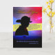 Carte de voeux religieuse en papier Merci pour pompier. Un pompier muni d'un casque de pompier se tient au milieu de lumières colorées en silhouette. Écriture biblique de Deutéronome 31:6. Copyright © Shoaff Ballanger Studios.