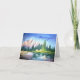 Ce tableau montre une montagne rosée escarpée, une forêt verte, une vallée fluviale et un ciel bleu. Il est basé sur une peinture acrylique originale sur toile de l'artiste Artcor7Cards. Sur le devant, la carte a cette image et l'expression : "Merci". A l'intérieur, il y a aussi de petites versions de l'image et de l'expression : "Merci !"