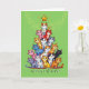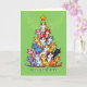 Jetez une carte de Noël pour un amoureux des chats. Chats colorés disposés comme un sapin de Noël avec un couvert étoilé et un arrière - plan vert avec les mots "Joyeux Catmas"