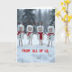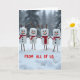 The different textures of the marshmallows, twigs, and scarves bring depth to the composition. The mix of red tones in the scarves adds a unique touch to each character. In the front, the words "FROM ALL OF US." in bold red letters bring a personal touch to the scene, making it a heartfelt holiday greeting from a group. This card is perfect for spreading holiday cheer and goodwill. 🎅🏼🎄🎁
