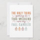 Ce design humoristique et cosy d'automne présente la phrase spirituelle "La seule chose qui s'allume ce week-end, ce sont mes bougies d'automne" dans un mélange de polices grasses et élégantes. Le texte est disposé de manière créative avec des tailles et des styles de police variés, ajoutant un intérêt visuel et un ton ludique. La palette de couleurs comprend des teintes automnales chaudes comme l'orange brûlé, les verts terreux et les bruns doux, qui évoquent la chaleur et le confort de la saison.
