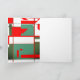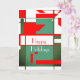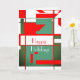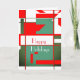 Faites-en un séjour moderne du milieu du siècle. L'illustration est un graphisme d'art qui reflète ce style de design rétro et vintage, aux formes et lignes audacieuses et géométriques dans les tons vert et rouge sur un arrière - plan blanc. Le message "Joyeuses fêtes" est écrit en caractères blancs gras. Sur le rabat intérieur de la carte est le même graphique, mais sans mots.