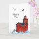 Grand phare rouge avec vague et mouette sur arrière - plan blanc pour anniversaire général. Le texte est modifiable.