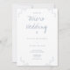 Un faire-part de mariage pour un micro mariage. Cette invitation est faite en bleu sur blanc et présente les détails de la feuille. Ajoutez simplement vos informations, ajoutez cet invitation à votre panier et profitez de votre petit mariage intime.