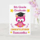 Carte Mignonne 5e année de diplôme Chouette rose Félicat