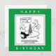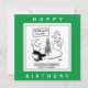 Carte d'anniversaire du fabricant de modèles. L'homme d'un club de mannequins a construit un modèle de la Tour Eiffel à partir de saucisses. Dessin surréaliste du caricaturiste britannique Nigel Sutherland.