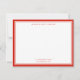 Tout le monde aime recevoir une note manuscrite et c'est le comble des bonnes manières de les envoyer parce que parfois un texte ou un email n'est pas approprié. Envoyez vos remerciements à vos amis et à votre famille, ou félicitations ou bonjour simple sur ces cartes de notes - ils adoreront recevoir quelque chose de vous et apprécieront que vous ayez pris le temps de le faire. Cette carte de note a une largeur de bordure triple descendante en rouge bonbon. La carte peut être personnalisée avec l'inclusion d'un nom en haut et d'une adresse en bas. Le design est moderne, élégant et élégant. Le dos de la carte est dans la même couleur que l'avant.