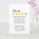 Carte d'évaluation et d'avis 4 étoiles drôle pour votre mère, parfaite pour la fête des mères et les anniversaires ou juste pour la surprendre, garantie pour faire sourire (si votre maman a un sens de l'humour, cela va de soi. © Julie McIver