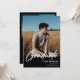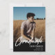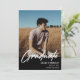 Écriture blanche moderne superposition "Graduate", faire-part de remise de diplômes de haute classe photo et invitation en noir. Lignes modèles pour le nom du diplômé, la classe de l'année et l'école. Le dos de la carte comporte 2 espaces photo supplémentaires avec des lignes de texte pour les détails de votre fête d'ouverture/remise des diplômes.
