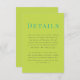 Cette carte de boîtier Mariage Détails de la collection Leilani présente des couleurs vives, audacieuses et une typographie moderne, qui feront une impression durable sur vos invités! Personnalisez-le avec vos détails facilement et rapidement. Appuyez simplement sur le bouton "customiser" pour réorganiser et formater le style et le placement du texte.