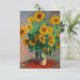 Carte représentant la peinture à l’huile de Claude Monet Bouquet of Sunflowers (1881). Beaux tournesols dans un vase bleu au-dessus d'une table rouge. Un grand cadeau pour les amateurs d'impressionnisme et d'art français.