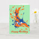 Un design élégant de peinture d'art expressionniste abstrait éclaboussant de couleurs orange et bleu contre un arrière - plan vert menthe avec un accueil d'anniversaire heureux. Arty et funky, ce design est coloré et vif.