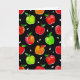 Pommes aquarelles colorées à la main, colorées à l'eau, dans des couleurs rouge, vert et or. Il est accentué avec des graines de pomme blanches et montré sur un arrière - plan noir personnalisé. Sélectionnez votre couleur arrière - plan préférée si vous le souhaitez et faites du motif grand ou petit pour faire cette carte de voeux juste pour vous. Un design amusant pour l'automne, les amoureux des pommes ou même les enseignants pour le retour à l'école!