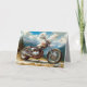 Carte de voeux avec peinture d'une moto bobber sur fond de montagne. Idéal comme un anniversaire, anniversaire, Fête des pères ou carte de retraite pour les amateurs de moto, mais aussi bien pour d'autres expressions ou occasions. Customisez cette carte avec votre propre message à l'intérieur.