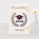 A celebratory design featuring a graduation cap framed by a laurel wreath with purple and gold tones, accented by golden stars, created to honor induction into the National Technical Honor Society. The soft background wash gives the design a polished, ceremonial feel, while the customizable name option on the front makes it a truly personal way to recognize a student’s hard work, dedication, and achievement.