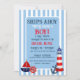 Partagez vos nouvelles officielles avec cette amusante invitation à la fête du thème nautique. Personnalisez-le comme vous le choisissez, cette invitation est parfaite pour le premier anniversaire de bébé ou la douche révélatrice de genre. L'invitation se présente dans un assortiment de tailles et de choix de papier. Recherchez des idées de fête coordonnées dans la collection Oh Boy Ships Ahoy.