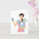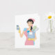Une femme nettoie en tenant beaucoup de produits de nettoyage. Cette conception semble vraiment efficace sur ces cartes de voeux