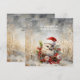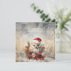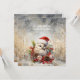La façon la plus agréable d'envoyer des voeux de Noël à vos amis et votre famille. Un mignon poussin habillé de rouge avec une tasse de thé sur un arrière - plan en or et en bois gris.