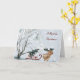 Carte de Noël avec une orignale illustrée tirant un sapin de Noël à pointes noires avec un arbre enneigé et une tempête de neige. Vous pouvez modifier les mots à l'intérieur de la carte si vous le souhaitez. Merci à Creative Fabrica, Design Cuts et Hungryjpeg pour certains des éléments dans le design.