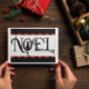 La tranquillité de la période des fêtes est accentuée par la grâce tranquille d'une silhouette de félin sur cette carte de Noël douce.