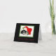 Une image mignonne avec un chiot et un chaton à l'intérieur d'un chapeau de Père Noël avec le texte De notre famille à la vôtre.