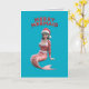 Une sirène en rayures de Noël porte un chapeau de Père Noël.