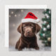 Joli chiot du Labrador au chocolat portant un chapeau de Père Noël.