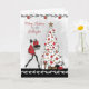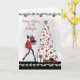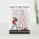 Carte de Noël moderne pour la filleule, représentant une dame élégante vêtue de rouge avec des talons hauts portant des cadeaux vers un beau sapin de Noël décoré de blanc. Graphismes gracieusement fournis par Crave Designs.