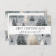 Moderne, Élégant, Arbres de Noël -Gris-Beige-Argent-Motif, Salon, Affaires, Certificat Cadeau. Célébrez la saison des dons avec ce charmant certificat cadeau de Noël arboré ! Parfait pour diffuser l'enthousiasme des vacances à des amis, à la famille et à des clients, ce certificat cadeau personnalisé capture la magie de l'hiver avec son magnifique design à feuillage persistant et festif de chutes de neige. Idéal pour les petites entreprises, les spas, les centres de bien-être ou toute entreprise qui souhaite offrir une option de cadeau de vacances réfléchie. Ajoutez une touche chaleureuse à votre cadeau de vacances en permettant aux clients de donner une expérience ou un produit grâce à un certificat cadeau professionnel et joliment conçu. Ce certificat festif apportera de la joie à tous ceux qui le reçoivent et est sûr de répandre la joie des fêtes !