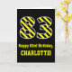 L'avant de cette carte de voeux captivante et audacieuse à thème d'anniversaire comporte un grand numéro "83" avec un motif rayé jaune et noir, ainsi que le message "Happy 83rd Birthday," et un nom personnalisé. L'arrière - plan du devant est noir de couleur. L'intérieur comporte un message de voeux d'anniversaire personnalisé, ou peut-être pourrait-il être effacé et laissé vide si un message doit être écrit à la main à la place. Une carte d'anniversaire personnalisée comme celle-ci pourrait être une façon amusante d'envoyer des voeux d'anniversaire à quelqu'un qui célèbre son quatre-vingt-troisième anniversaire. [~Z0000382]