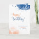 Simple, moderne, bleu et orange aquarelle carte d'anniversaire éclaboussée; personnalisez l'avant avec le nom et toute relation, mâle ou femelle; changez le verset intérieur, si vous voulez.