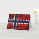 The design on this world flag birthday card includes words 'Happy Birthday' highlighted from the flag of Norway. Send special Norvégigian greetings to friends who will appreciate the international gesture. © 2011 FlagAndMap | art