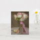 Bouquet rose et blanc noué avec ruban en vichy rouillé sur dentelle vintage pour carte blanche.
