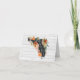 Send greetings from the sunshine state with these rustic chic note cards featuring a silhouette map of the state of the florida adorned with oranges, lush greenery, and tropical flowers on white wood plank background. "Wishes chauds" appears à main blanche lettered typographiy inside the shape of the state.