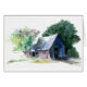 Scène rustique de grange parmi les arbres. Impression de l'aquarelle originale par John A. Muir.
