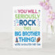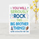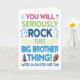 Félicitez le futur grand frère avec cette carte de conception de typographie colorée et amusante qui présente le message "Vous allez vraiment déchirer en tant que grand frère ! Nous sommes tellement excités pour vous !". La typographie est accentuée par des notes de musique et des illustrations de bébé et de jouets à l'aquarelle (football, fusée, baseball, biberon). L'intérieur comporte ce message, mais peut être personnalisé avec votre propre message personnel.