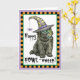 Envoyez des salutations d'Halloween avec cette carte d'un mignon chiot de Terre-Neuve portant un masque vert et un casquette de sorcière décoré d'une araignée stupide. Idéal pour les enfants de tous âges qui aiment Newfies et Halloween. Faites une Happy HOWL-oween !