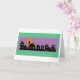 Sorcière de carte de Halloween volant au-dessus des maisons