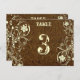 Charming table number for reception, dîner, wedding. Flat post-card. Image of tooled leather for background